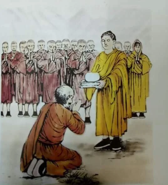 When the Buddha returned to the royal palace to visit His father, the King, He intended to enlighten the people in the palace, but when the Buddha spoke, no one accepted it.